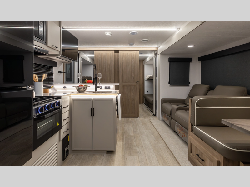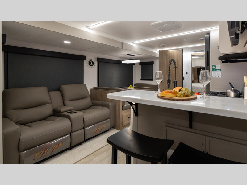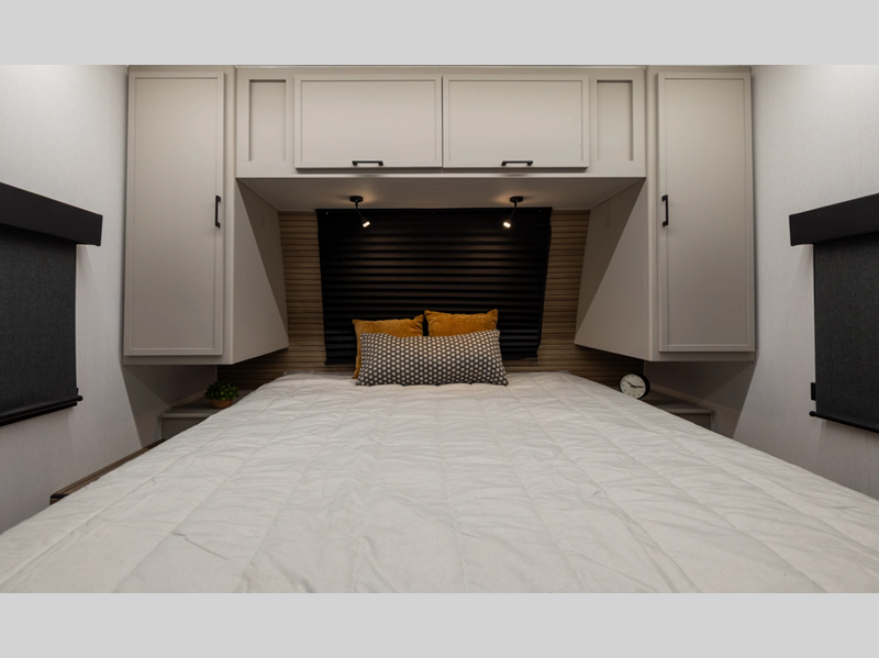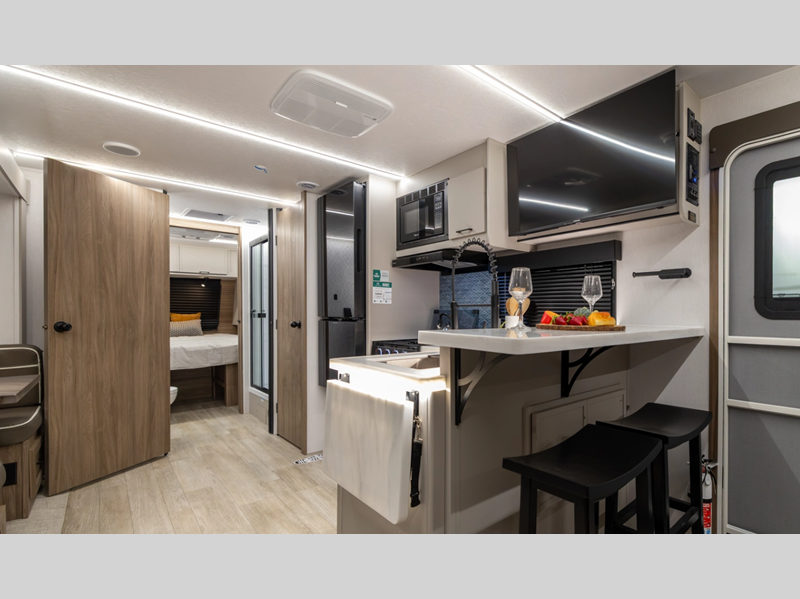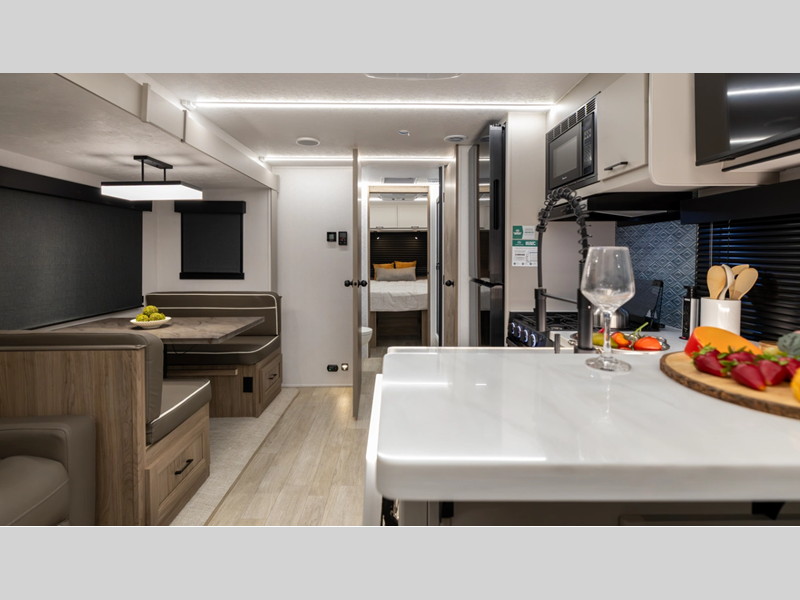 This stunning new brand of travel trailer is designed with premium features and innovative design elements that will make your journeys unforgettable. The Liberty Edition boasts impressive interior space, with a cleverly designed layout and thoughtful touches that make it feel like a home away from home. Flip-up countertop extensions provide extra space for meal prep or work.