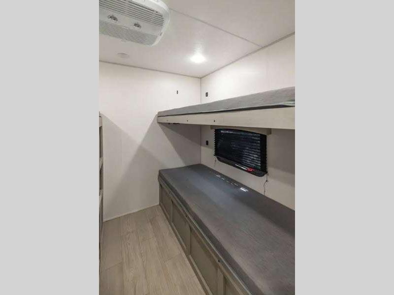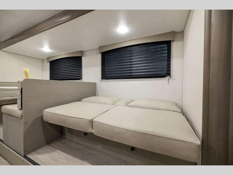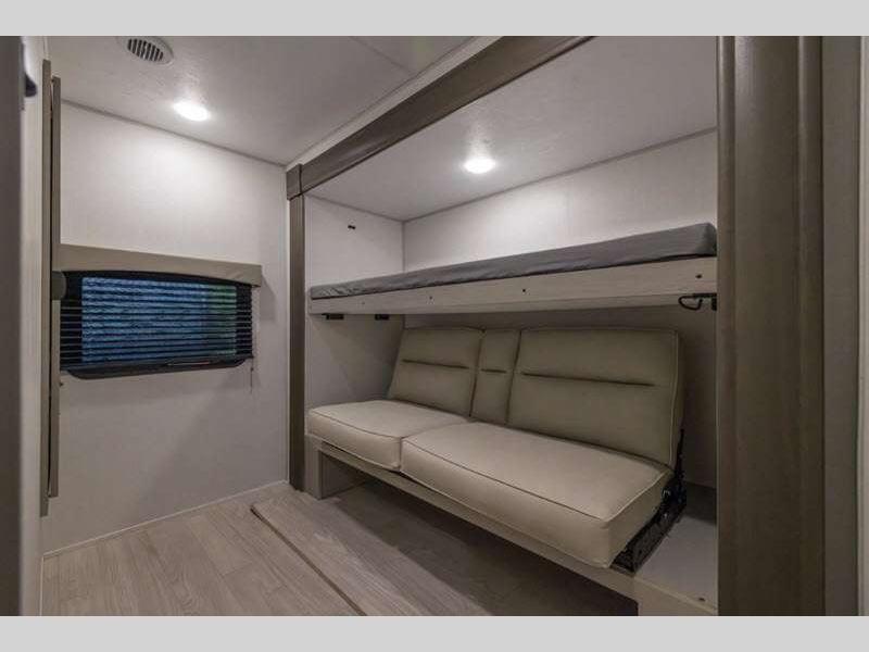 Sleeps 7 Slides 1 Length 36 ft 11 in Ext Width 8 ft Ext Height 11 ft Hitch Weight 930 lbs GVWR 9730 lbs Dry Weight 7208 lbs Cargo Capacity 2522 lbs Fresh Water Capacity 40 gals Grey Water Capacity 37 gals Black Water Capacity 32 gals Furnace BTU 30000 btu Number Of Bunks 2 Available Beds RV Queen Refrigerator Type 12 Volt Refrigerator Size 10 cu ft Cooktop Burners 3 Shower Size 32" x 32" Number of Awnings 1 Water Heater Type Tankless On Demand AC BTU 13500 btu TV Info LR Smart TV Awning Info 21' Power with LED Light Strip & Adj. Legs Axle Count 2 Shower Type Tub/Shower Combo Similar Floorplans