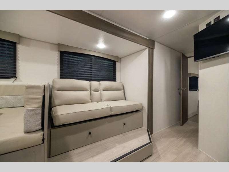 Sleeps 9 Slides 1 Furnace BTU 30000 btu Number Of Bunks 2 Available Beds RV Queen Refrigerator Type 12 Volt Refrigerator Size 10 cu ft Cooktop Burners 3 Shower Size 24" x 36" Number of Awnings 1 Water Heater Type Tankless On Demand AC BTU 13500 btu TV Info LR Smart TV Awning Info 21' Power with LED Light Strip & Adj. Legs Axle Count 2 Shower Type Tub/Shower Combo Similar Floorplans