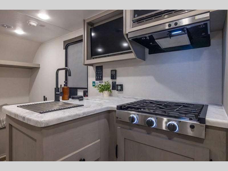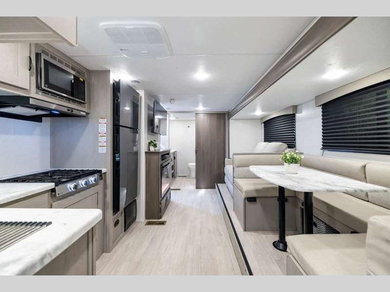 Sleeps 5 Slides 1 Length 30 ft 9 in Ext Width 8 ft Ext Height 10 ft Hitch Weight 740 lbs GVWR 7740 lbs Dry Weight 5865 lbs Cargo Capacity 1872 lbs Fresh Water Capacity 40 gals Grey Water Capacity 69 gals Black Water Capacity 32 gals Furnace BTU 30000 btu Available Beds RV Queen Refrigerator Type 12 Volt Refrigerator Size 10 cu ft Cooktop Burners 3 Shower Size 36" x 30" Number of Awnings 1 Water Heater Type Tankless On Demand AC BTU 13500 btu TV Info LR Smart TV Awning Info 21' Power with LED Light Strip & Adj. Legs Axle Count 2 Washer/Dryer Available Yes Shower Type Tub/Shower Combo Similar Floorplans