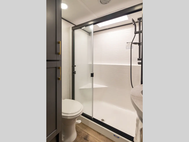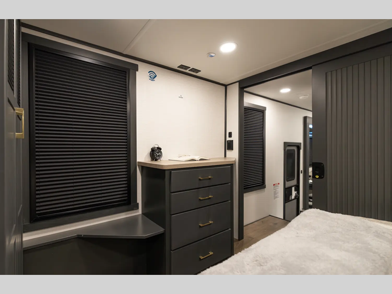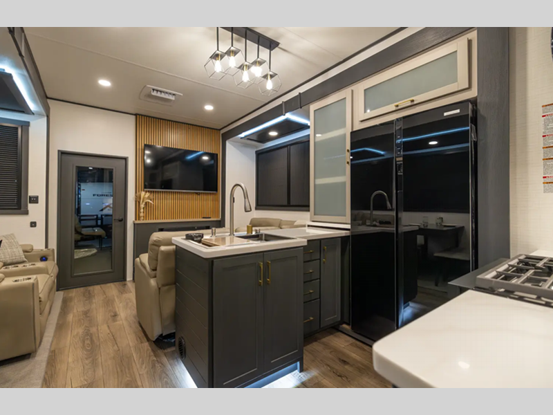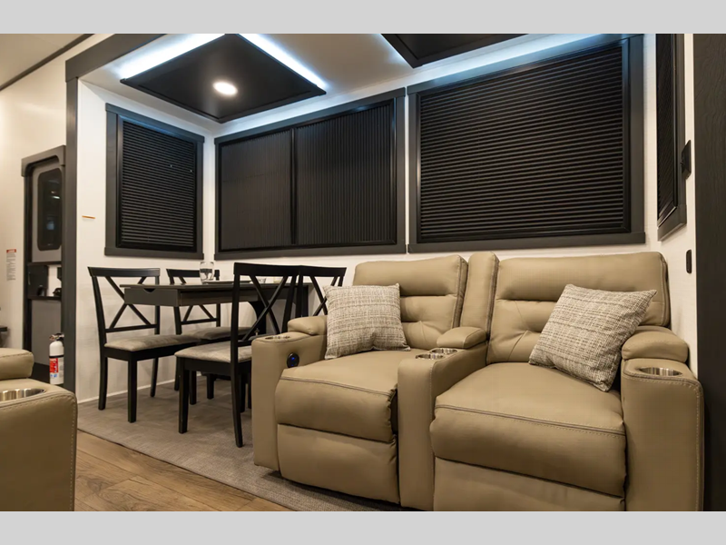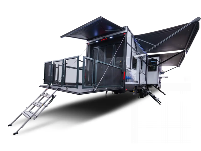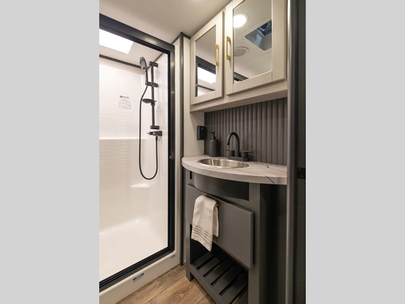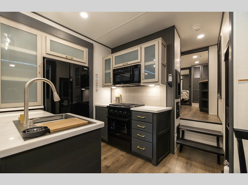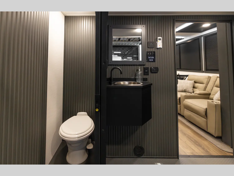 These toy haulers are 3/4 ton or 1 ton towable, and the additional height and width provides extra room for your toys to come along too. The MORryde CRE3000 suspension enhancement makes towing smooth and the Ground Control 3.0 auto electric leveling will have you set up at camp in no-time. The contemporary interior design will make your space feel a little more like home and the Congoleum stain-resistant vinyl flooring is perfect for a toy hauler with dirt, gas, and oil being brought in.