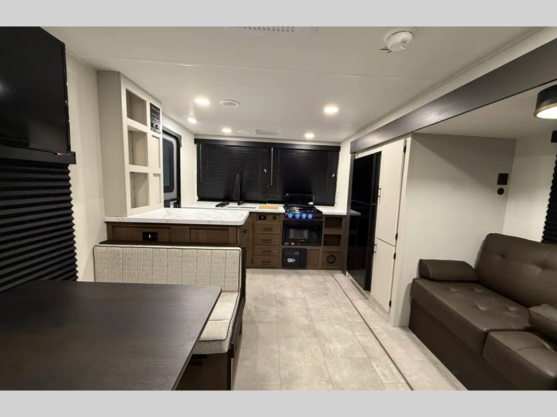 Sleeps 4 Slides 1 Length 29 ft 2 in Ext Width 8 ft Ext Height 10 ft 7 in Hitch Weight 705 lbs Dry Weight 5923 lbs Cargo Capacity 1782 lbs Fresh Water Capacity 42 gals Grey Water Capacity 68 gals Black Water Capacity 34 gals Furnace BTU 30000 btu Available Beds King Refrigerator Type 12V Cooktop Burners 3 Number of Awnings 1 Water Heater Type Tankless AC BTU 15000 btu TV Info LR Smart TV Awning Info Power Awning w/LED Lights Axle Count 2 Shower Type Standard Similar Floorplans