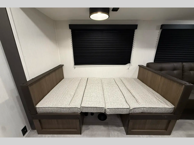 Sleeps 8 Slides 2 Length 34 ft 11 in Ext Width 8 ft Ext Height 10 ft 8 in Hitch Weight 780 lbs Dry Weight 6583 lbs Cargo Capacity 1197 lbs Fresh Water Capacity 42 gals Grey Water Capacity 34 gals Black Water Capacity 34 gals Furnace BTU 30000 btu Number Of Bunks 4 Available Beds Queen Refrigerator Type Large Two Door 12V Cooktop Burners 3 Number of Awnings 1 Water Heater Type Tankless AC BTU 15000 btu Awning Info 19' Power w/LED Lights Axle Count 2 Shower Type Standard Electrical Service 30 amp Similar Floorplans